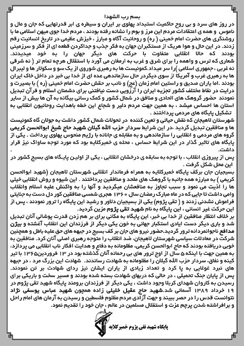 برگزاری اولین یادواره شهدای پایگاه شهید پژوم در لاهیجان