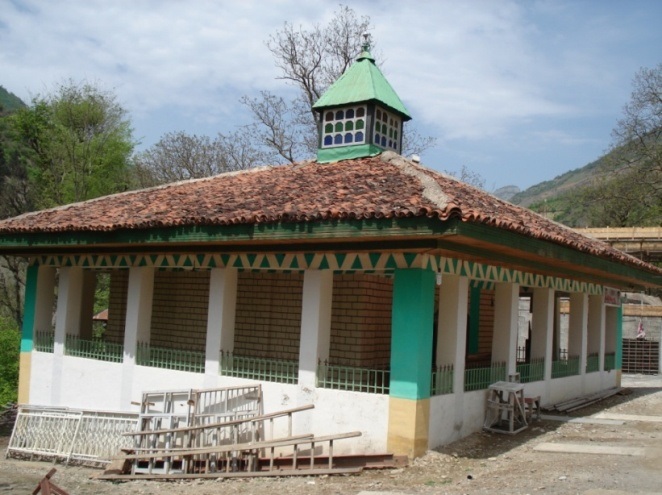 تصویر1. مسجد بازسازی شده ی منسوب به ناصر کبیر(ناصر الحق) از مروجان اصلی زیدیه در روستای رودبارک در دره ی رودخانه ی پل رود در سرزمین گیل و دیلم با فرم اولیه آن (عکس از نگارنده27/1/89).
