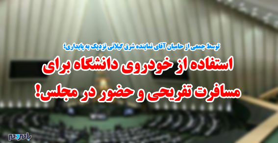 استفاده از خودروی دانشگاه برای مسافرت تفریحی و حضور در مجلس!